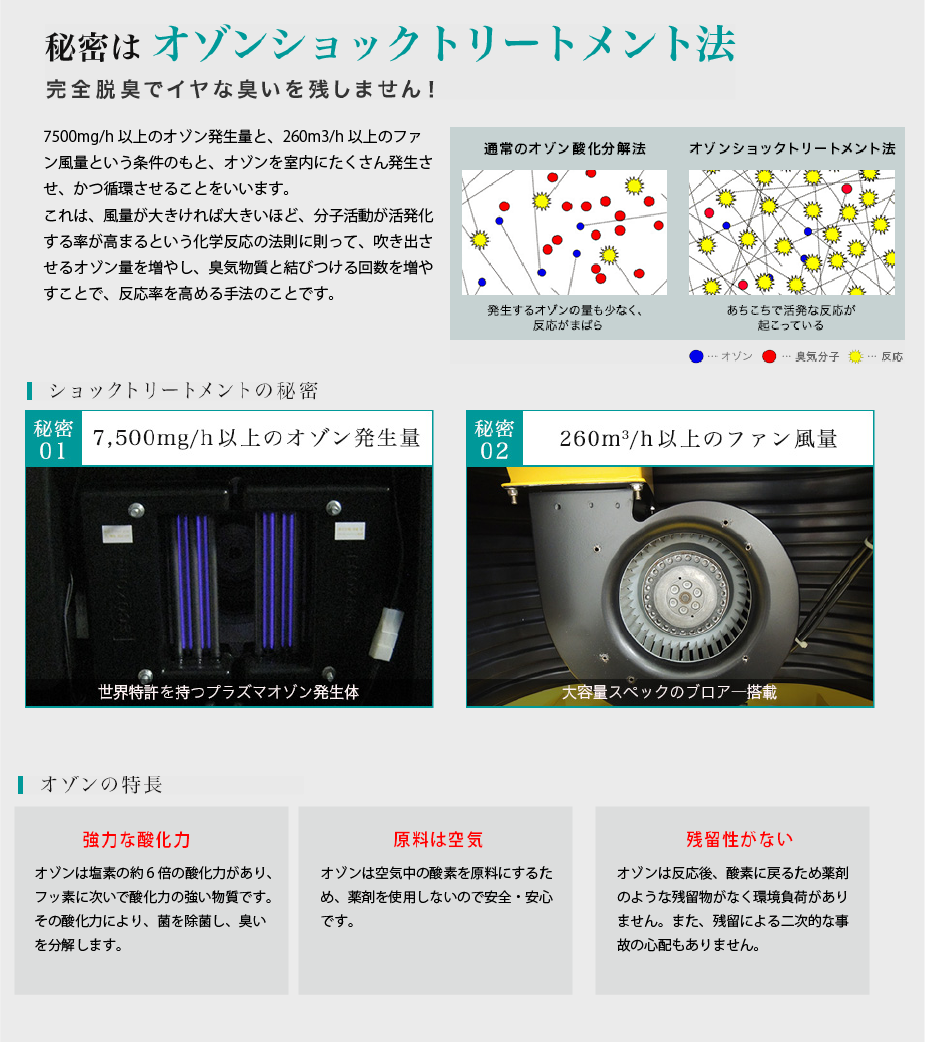 「ダスキンオゾン脱臭・除菌システム」は、薬剤や低濃度オゾン消臭機では