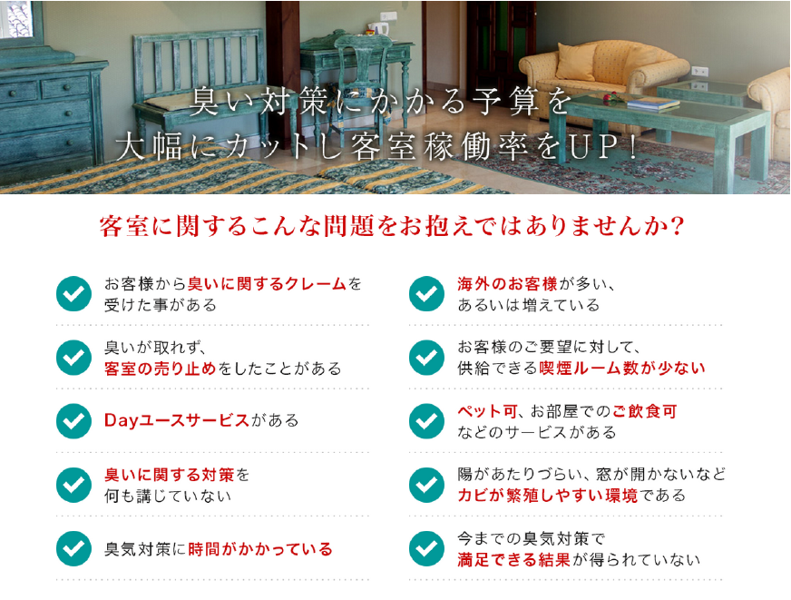 ホテルの臭気処理には、品質はもちろんスピードが求められます。