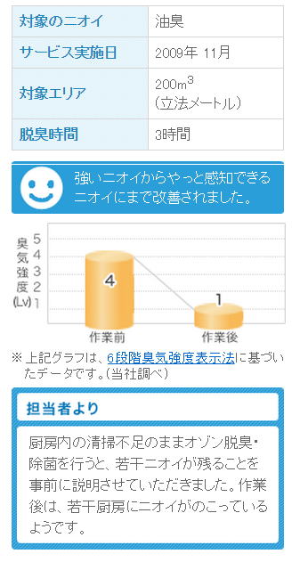 ダスキンのオゾン脱臭・除菌サービスの効果がよく分かりました。