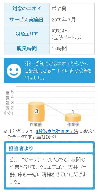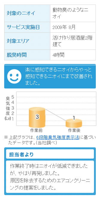 ニオイレベルは満足いくレベル(次の入居者へ貸せるレベル)に改善されました。