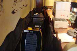 すす除去⇒床洗浄⇒消臭剤散布⇒オゾン薫蒸約12時間